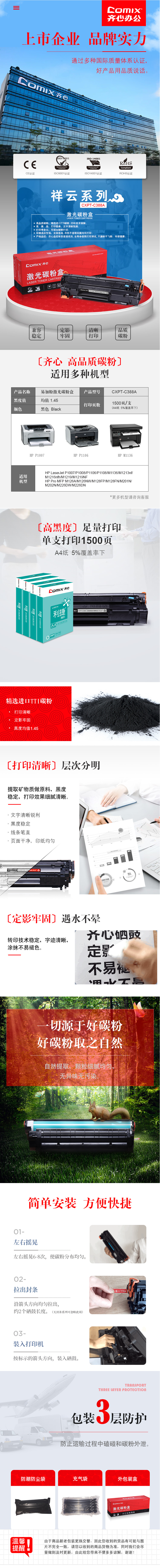 商品名称:齐心 CXPT-C388A 易加粉激光碳粉盒/硒鼓(专业版)