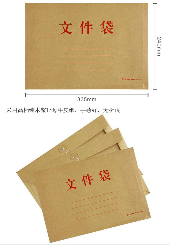 商品名称:齐心 AP-120 本色纯木浆牛皮纸 文件袋 A4 横式 10个/套