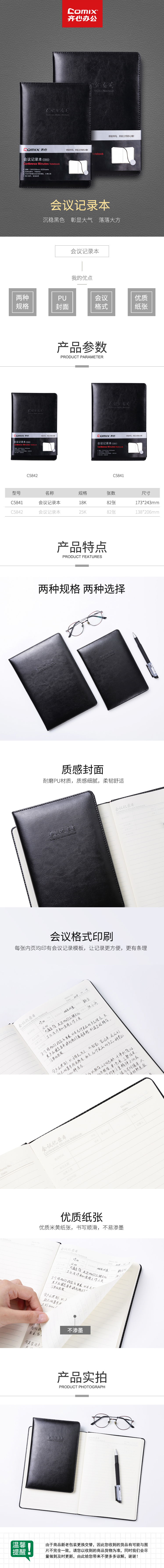 商品名称:齐心 C5841 会议记录本 18K 80张笔记本