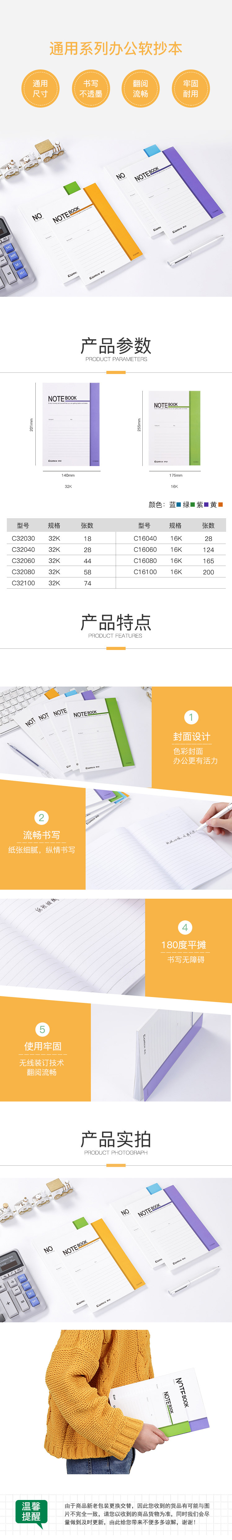 > 齐心 C16100 通用系列办公软抄本 B5 74张 配笔记本软面抄