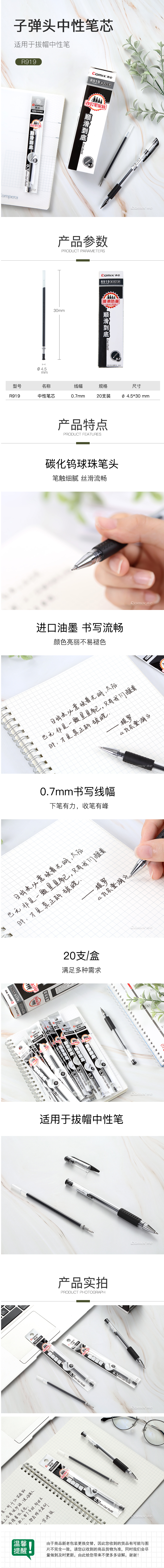 商品名称:齐心 R919 中性笔芯替芯0.7mm 商务专用