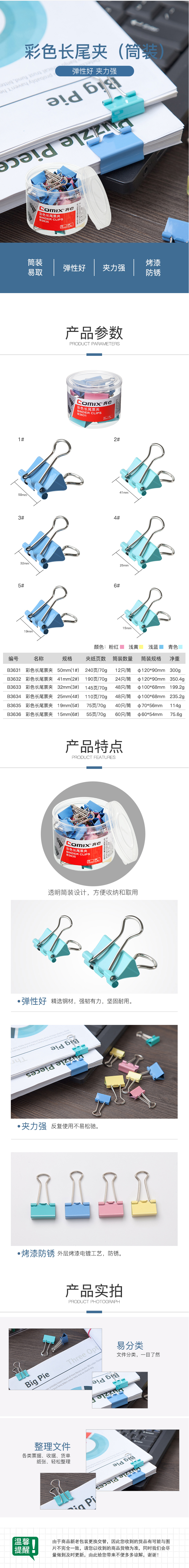 商品名称:齐心 B3632长尾夹票夹 2# 41mm 24只/筒