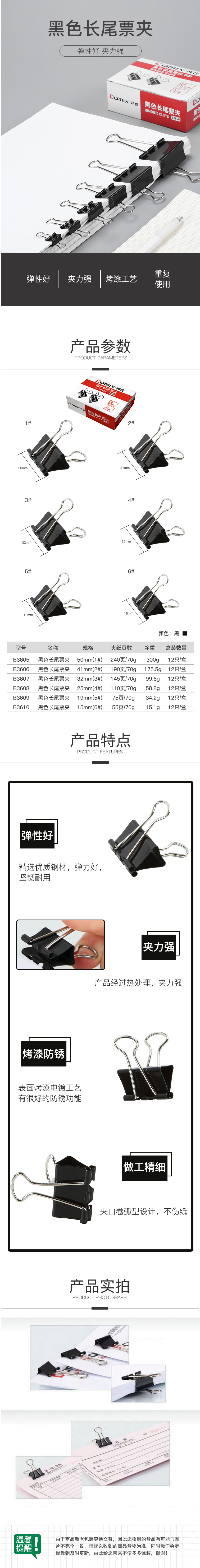 商品名称:齐心 B3608黑色长尾夹票夹 4# 25mm 12只/盒