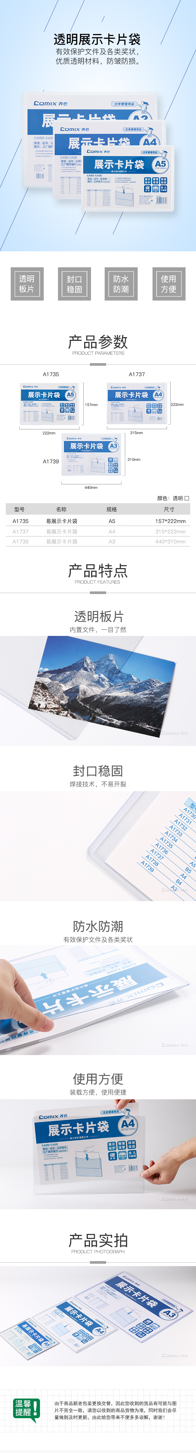 商品名称:齐心 A1737 易展示 卡片袋 A4 硬质