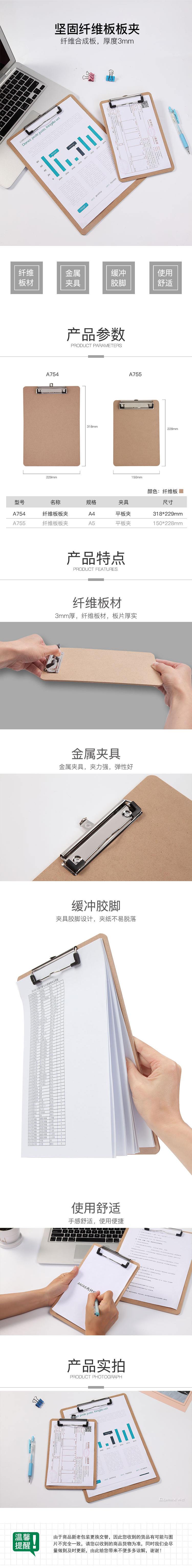 商品名称:齐心 A754 本色系列 便携式纤维板夹 A4 竖式